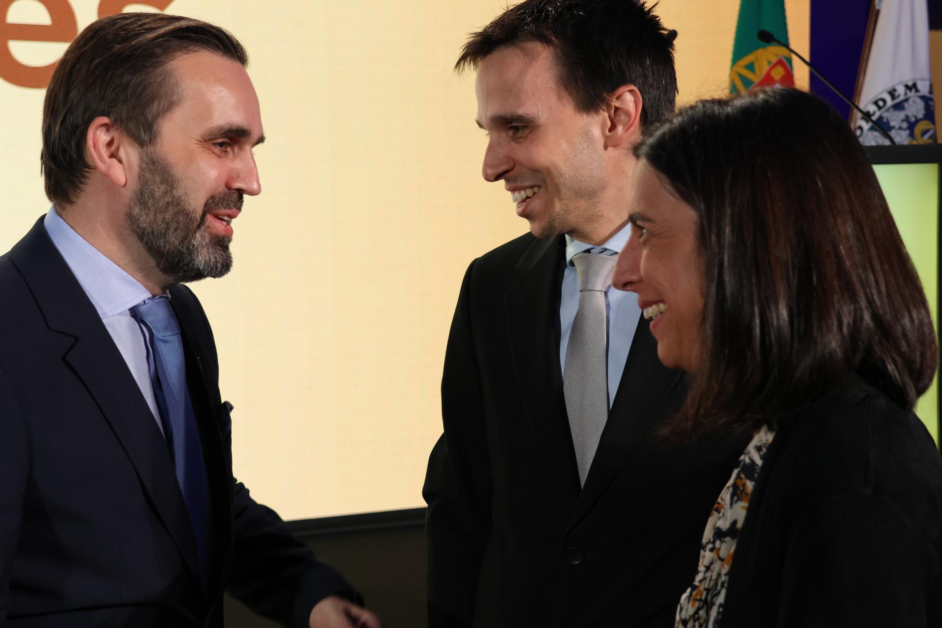Parceiros institucionais, excelentíssimas senhoras e senhores, estimados e estimadas colegas, sempre, e começo desta forma, sempre preservei, como sabem, quem me conhece com zelo a reserva de minha esfera privada e familiar. Contudo, não seria justo silenciar aqueles que dão sentido a tudo o que faço. Dulce, companheira incansável e cúmplice maior das minhas causas, com muita paciência eu reconheço. Francisco eu sei que estás sempre de volta do telemóvel, mas é só para te dizer que te admiro muito com o entusiasmo e o inconformismo, que tanto me motivam. E a Joana? A Joana não me está a ligar. Fonte inesgotável de alegria e inspiração diária. São a energia do meu percurso. A eles e a toda a minha família aqui presente. Dedico hoje e sempre este momento tão especial. Muito obrigado!